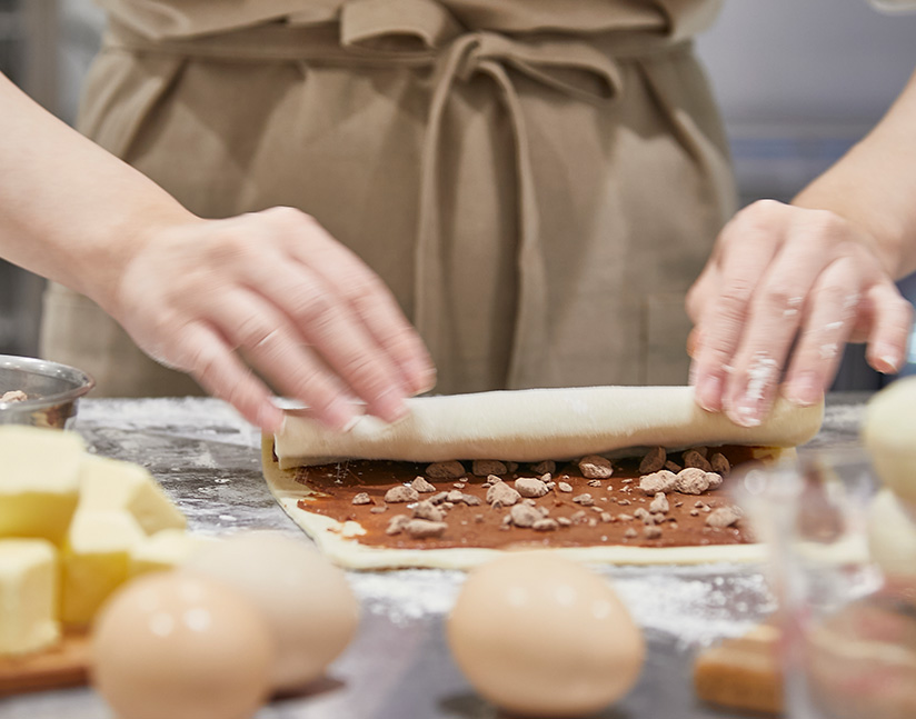 たっぷりの油脂を使用することで、繊細な生地の層が幾重にも重なります。